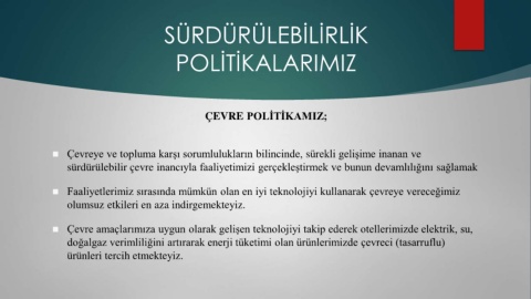 Çevre amaçlarımıza uygun olarak gelişen teknolojiyi takip ederek otellerimizde elektrik, su,